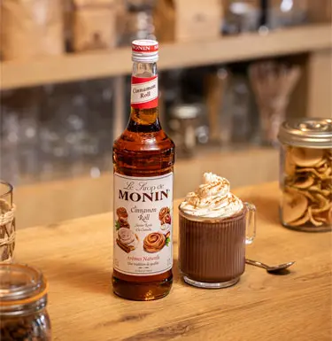 Versez le sirop MONIN Cinnamon Roll dans une tasse.