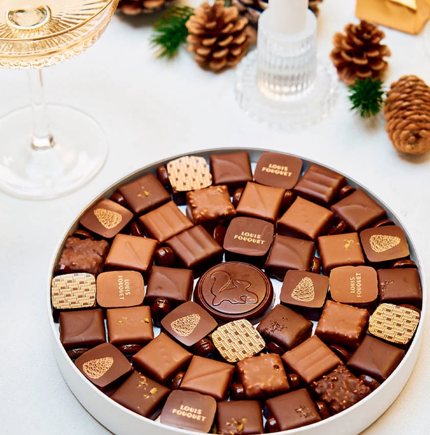 Les sublimes tablettes de chocolat noir ou chocolat au lait de la collection, ainsi que la Grande Boîte Ronde de Noël Louis Fouquet et ses 43 chocolats artisanaux feront aussi briller les yeux des gourmands !