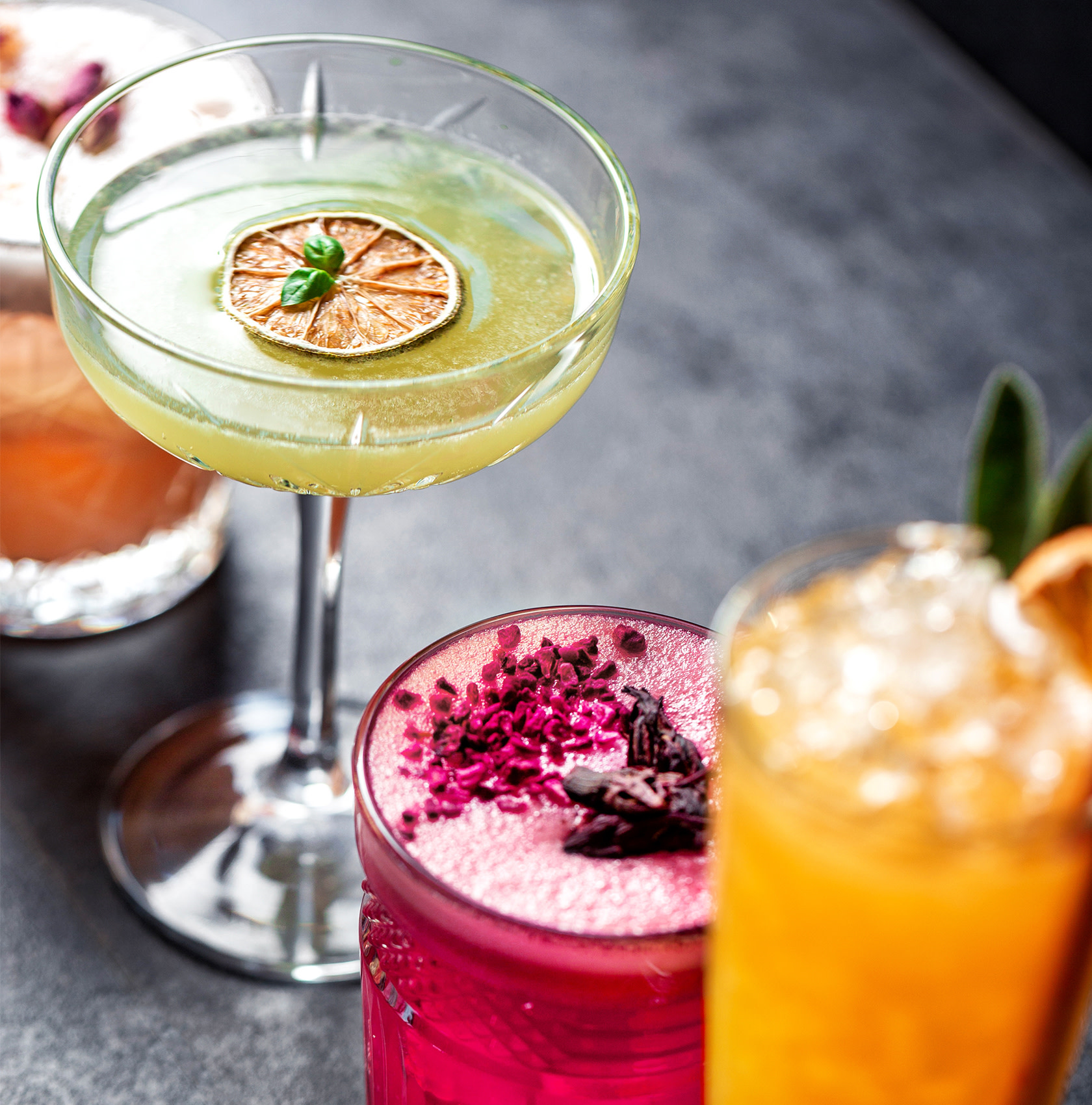 Idées de cocktails : l’élégant Ely Negroni avec une pointe de fleur d’oranger, ou l’exotique Ely Passionata au fruit de la passion, à la liqueur d’aloe vera et au rhum.