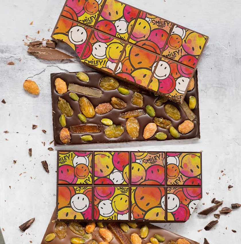 À l’occasion des 50 ans de Smiley, la marque a choisi la Maison Dalloyau pour collaborer autour d'une collection inédite et chocolatée. La Maison, dont l'emblématique Opéra ravit les papilles des français depuis plusieurs décennies, a imaginé trois créations exclusives : un opéra, une boîte de macarons et une tablette de chocolat. La collaboration Smiley et Dalloyau est disponible dès le 21 février au Magasin Gourmet des Galeries Lafayette Paris Haussmann.