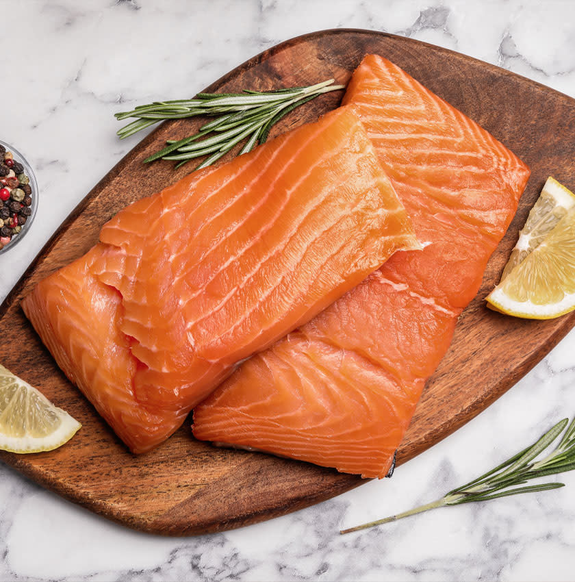 Notre sélection de saumons fumés Maison Barthouil : saumon fumé au bois d’aulne, saumon gravlax écossais bio.
