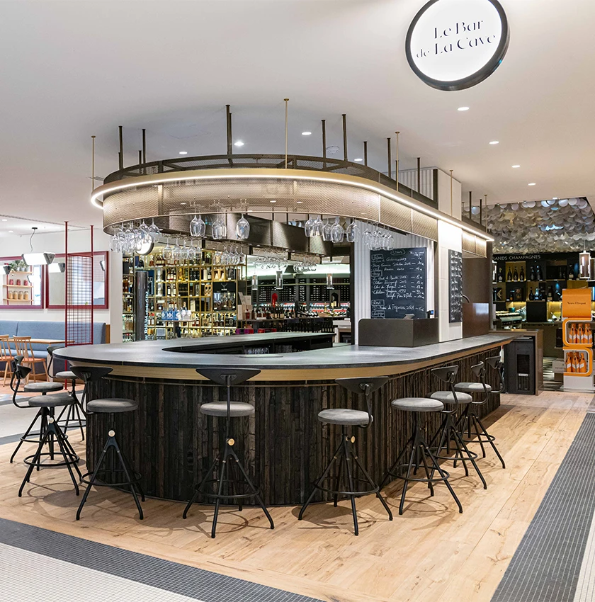 Le Bar de La Cave vous accueille 7 jours sur 7 (de 9 h à 21 h 30 du lundi au samedi et de 11 h à 20 h le dimanche et les jours fériés) au premier étage des Galeries Lafayette Le Gourmet, Paris 9e.