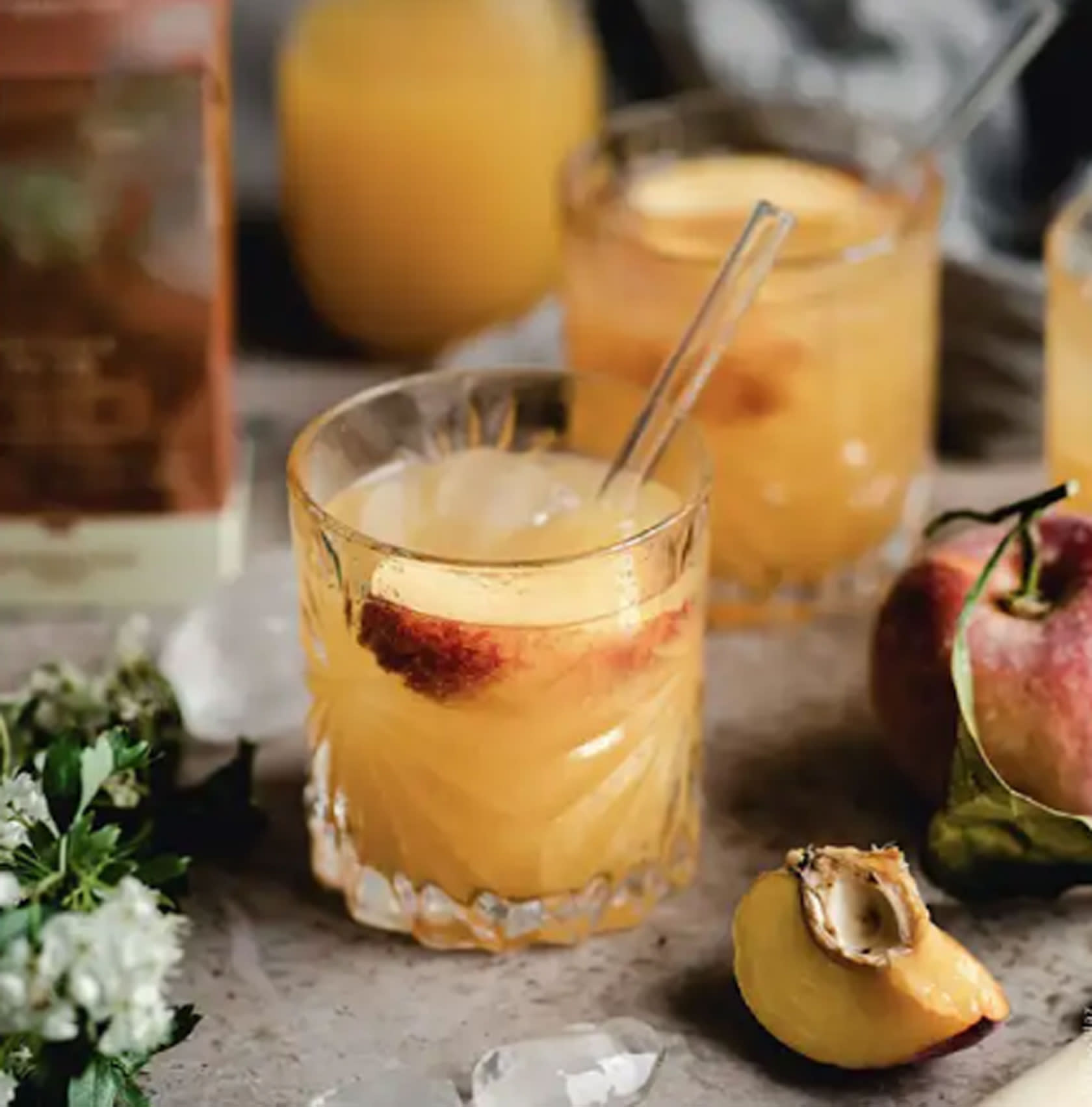 Laisser refroidir et verser sur glace dans une carafe. Ajouter le jus de pomme, le nectar d'abricot et les morceaux de gingembre .
