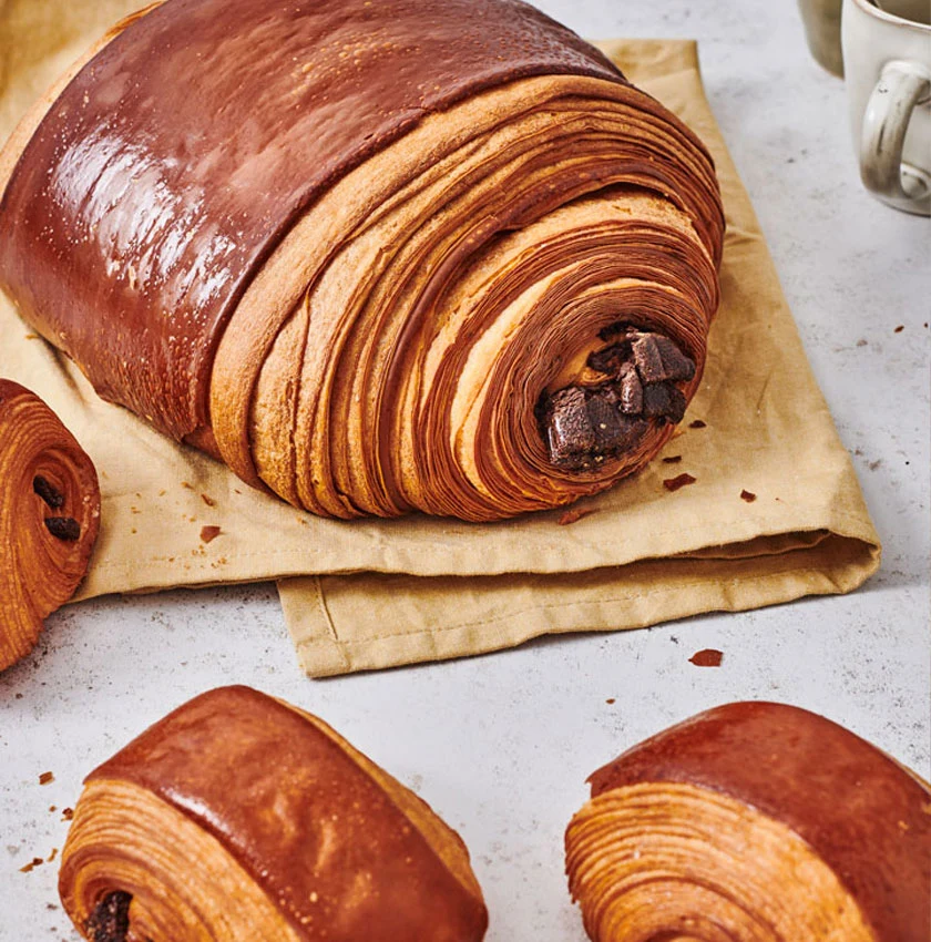 Le grand chef pâtissier vous propose des croissants et pains au chocolat géants, le format idéal pour un brunch ou un goûter gourmand entre amis ! Le pain au chocolat XXL ou le croissant XXL de la Maison Philippe Conticini bénéficient d’une fermentation lactique longue, qui développe les arômes du beurre et leur offre une texture mi-feuilletée, mi-briochée. Aucun gourmand ne pourra leur résister ! À découvrir également l’élégant pain au chocolat strié, avec une pâte à croissant au cacao et pas moins de trois barres de chocolat noir à l’intérieur.