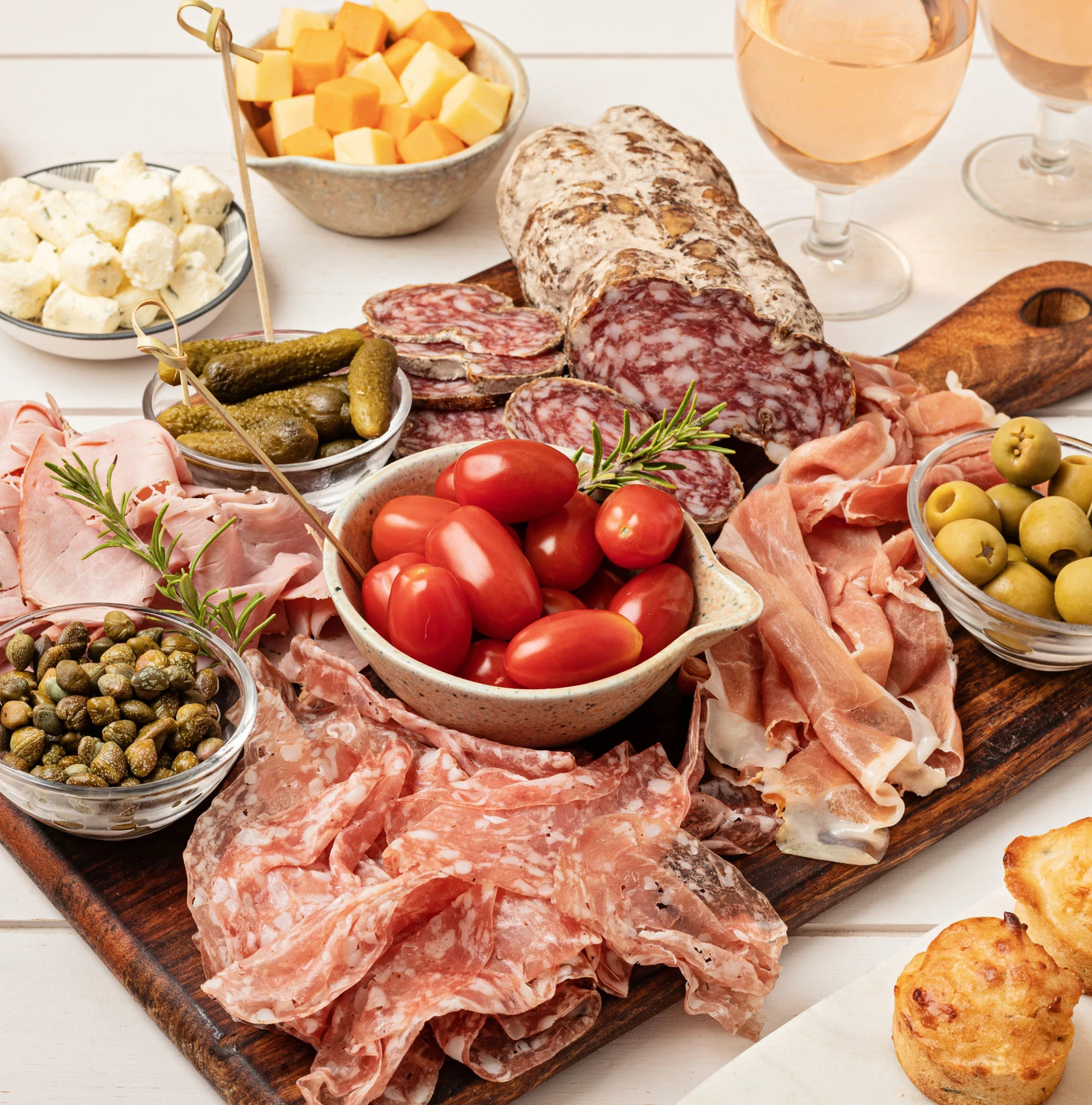 Alliés de la charcuterie, les fromages français ont aussi toute leur place dans cet apéritif canaille et généreux. Associez fromages à pâte dure et à pâte molle, fromages classiques et fromages plus confidentiels pour faire plaisir à tout le monde. Une idée de plateau de fromages : un comté 18 mois, un saint-nectaire fermier, un saint-félicien du Vercors, un crémeux de Bourgogne à la truffe et un chèvre, comme le Saint-Henri au thym.