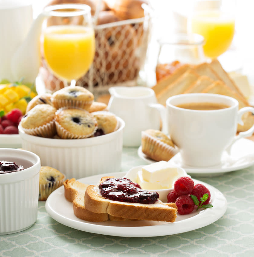 Des tartines de pain complet bio Chez Meunier (les céréales complètes, riches en glucides complexes, sont plus intéressantes sur le plan nutritif), accompagnées d’un miel acacia et gelée royale de France Hédène (la gelée royale est un trésor de la nature rempli de vitamines, minéraux et oligo-éléments), d’une bonne confiture (confiture fraise framboise griotte Les Confitures de Pascal ou confiture d'abricot Confiture Parisienne, par exemple) ou d’une pâte à tartiner de qualité, comme la crème d’amandes bio Teo&Bia (composée seulement d’amandes et de sucre !).