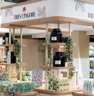 Le pop-up éphémère Thés de la Pagode vous invite au voyage dans un espace élégant d’inspiration asiatique. Avant d’acheter ou de déguster votre thé d’exception, prenez le temps de ralentir… Observez les différentes feuilles de thé, leurs couleurs, tentez de reconnaître les arômes, de deviner l’origine… vivez une véritable expérience sensorielle.