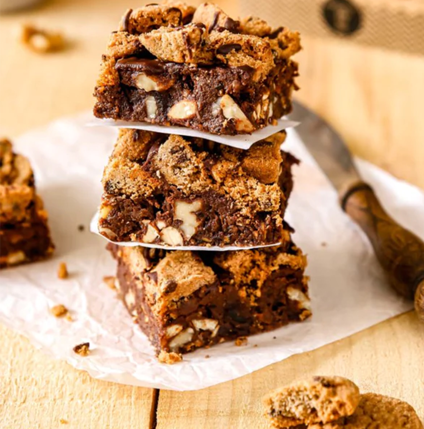 Placez le brookie au frigo pendant au moins 1h pour qu’il fige puis coupez des parts. Ce brookie se conserve plusieurs semaines au frigo dans une boite hermétique.
