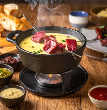 La fondue bourguignonne est une recette à base de viande de bœuf, dont les morceaux sont cuits par les convives dans de l’huile. Si les Suisses et les Bourguignons se disputent sa paternité, tout le monde s’accorde sur sa convivialité. Alors à vos caquelons !