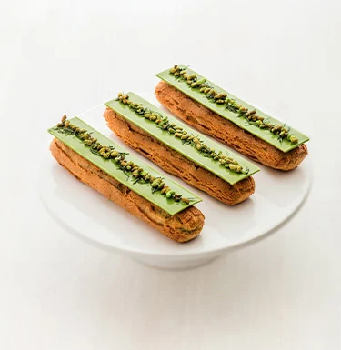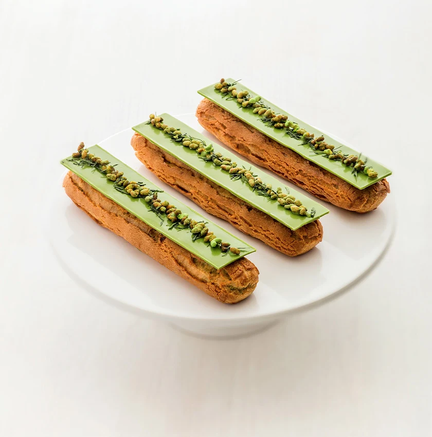 Entre tradition japonaise et pâtisserie française, ces éclairs au thé genmaicha et matcha signés Jugetsudo revisitent un grand classique avec finesse. Une création subtile et gourmande où les notes grillées du genmaicha rencontrent l’intensité végétale du matcha pour une expérience délicatement raffinée.