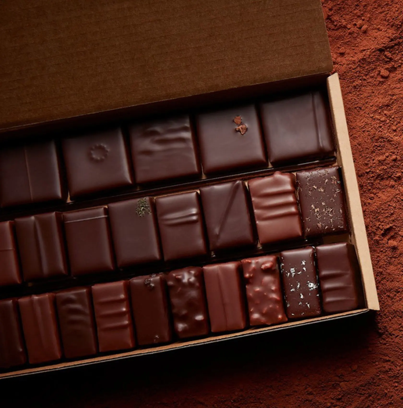 Parmi les spécialités Le Chocolat Alain Ducasse qui feront fondre les aficionados du cacao : tablette non conchée, coffret de pralinés, barre à croquer…
