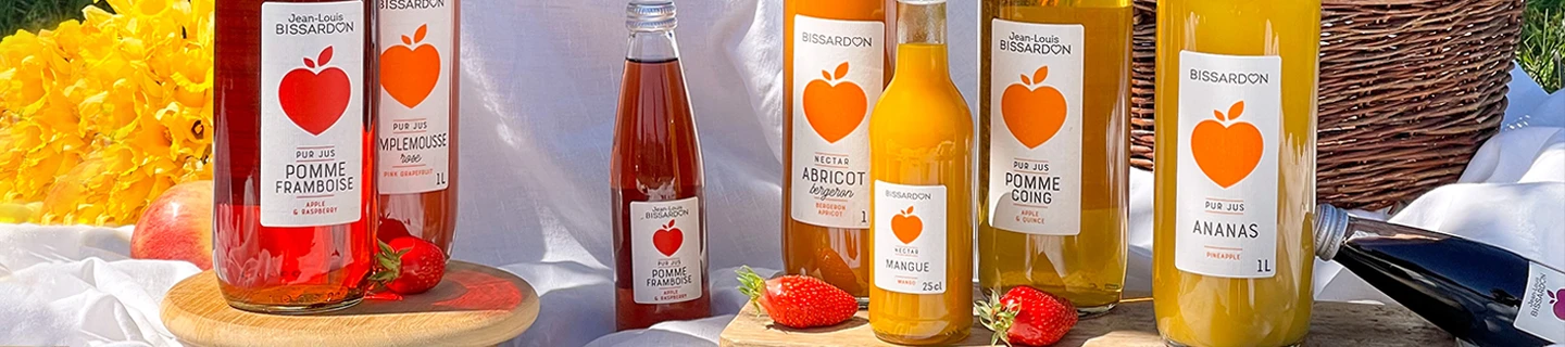La gamme premium de nectars et jus de fruits Jean-Louis Bissardon vous offre aujourd’hui 27 délicieuses saveurs pour tour à tour cajoler ou réveiller vos papilles. Appréciez la douceur du nectar de pêche jaune au petit-déjeuner, régalez-vous du gourmand nectar de fraise mara des bois au goûter ou sirotez le pur jus de pomme Bissardon à tout moment de la journée… Parmi bien d’autres jus Bissardon à commander en ligne.